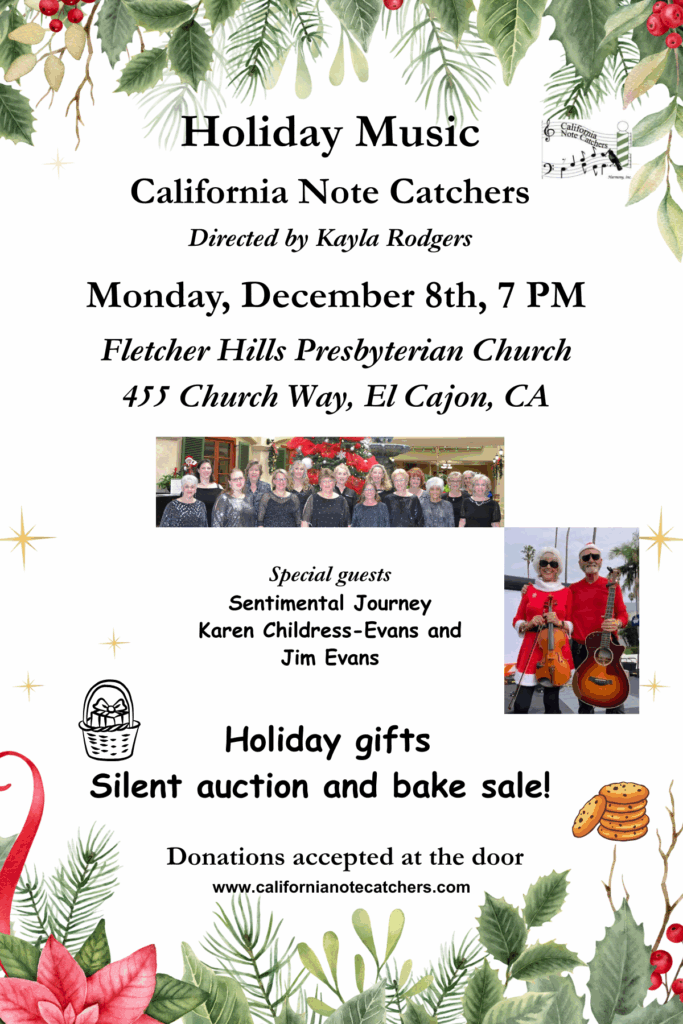 The California Note Catchers is a women’s barbershop harmony chorus based in San Diego County. We are a non-profit organization and are affiliated with the international barbershop organization, Harmony, Incorporated.